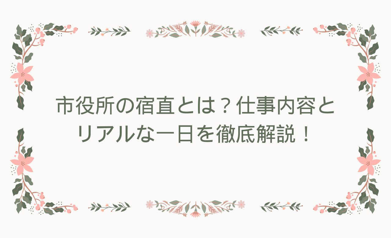 宿直というと「きつい仕事ではないか」と思われるかもしれません。